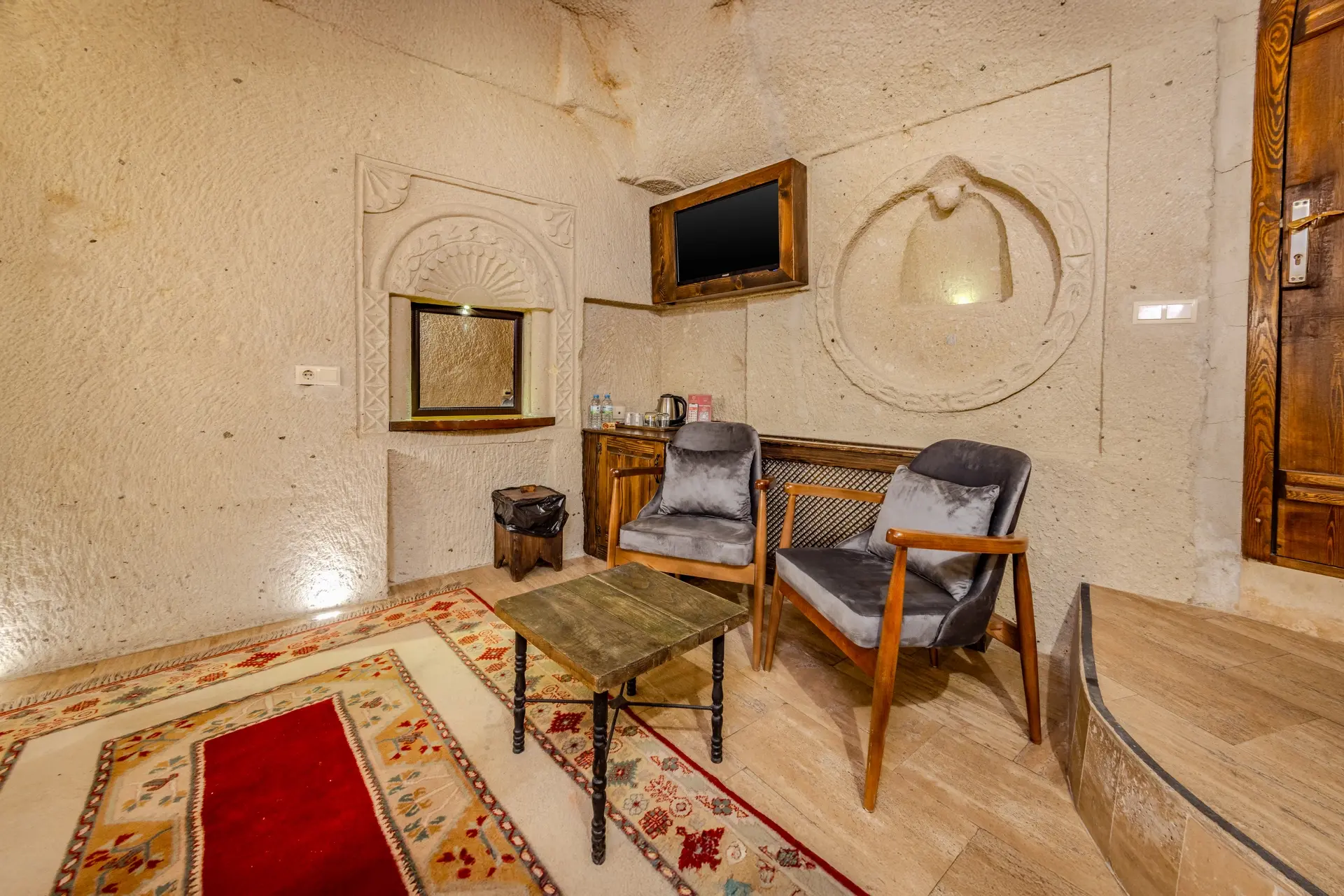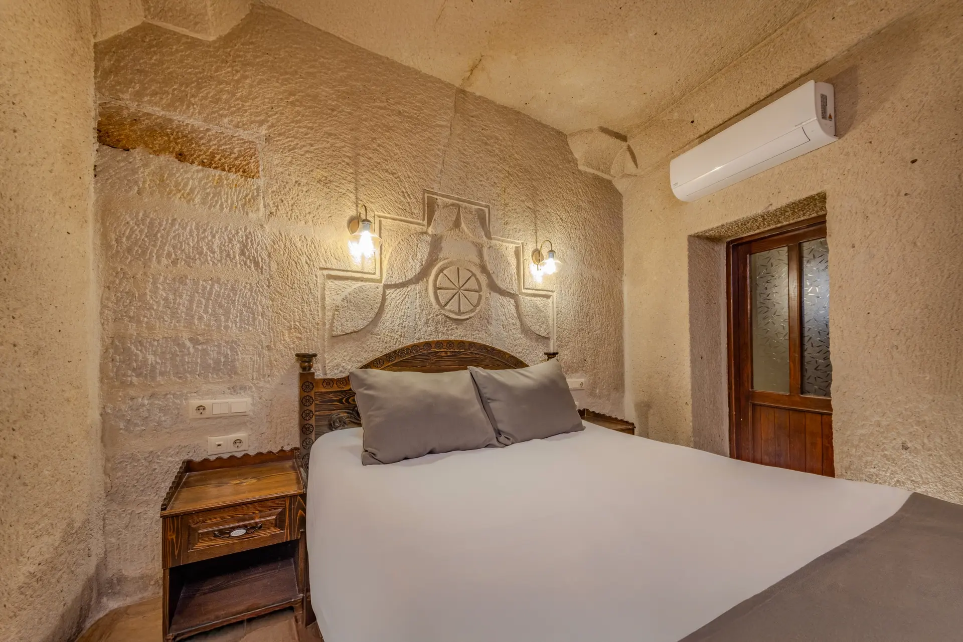 As one of the most special rooms at Castle Cave Hotel, Room 105 offers a spacious and refreshing stay with its own private balcony. The room is centered around a comfortable bed, while a table and chair provide the perfect spot to relax or enjoy the view. You can set the room temperature to your liking with the air conditioning and make use of the wardrobe and clothes hanger for your attire.